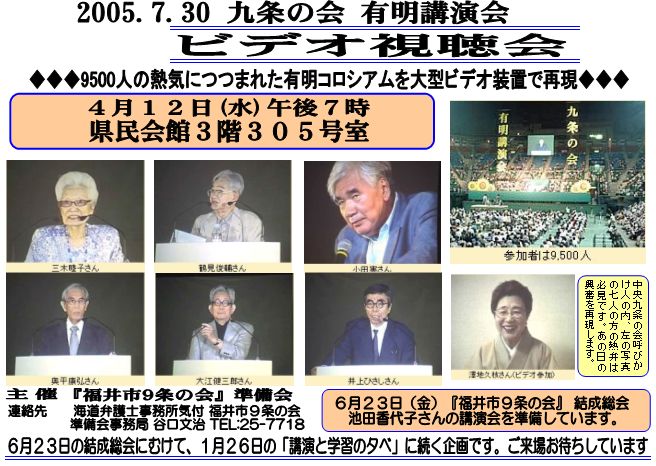 <06/06/23 福井市9条の会設立総会> <06/04/12 ビデオ視聴会> <06/01/26 学習と講演会>